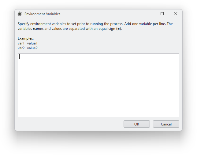 In the dialog box that opens, enter the desired environment variables in the text field.